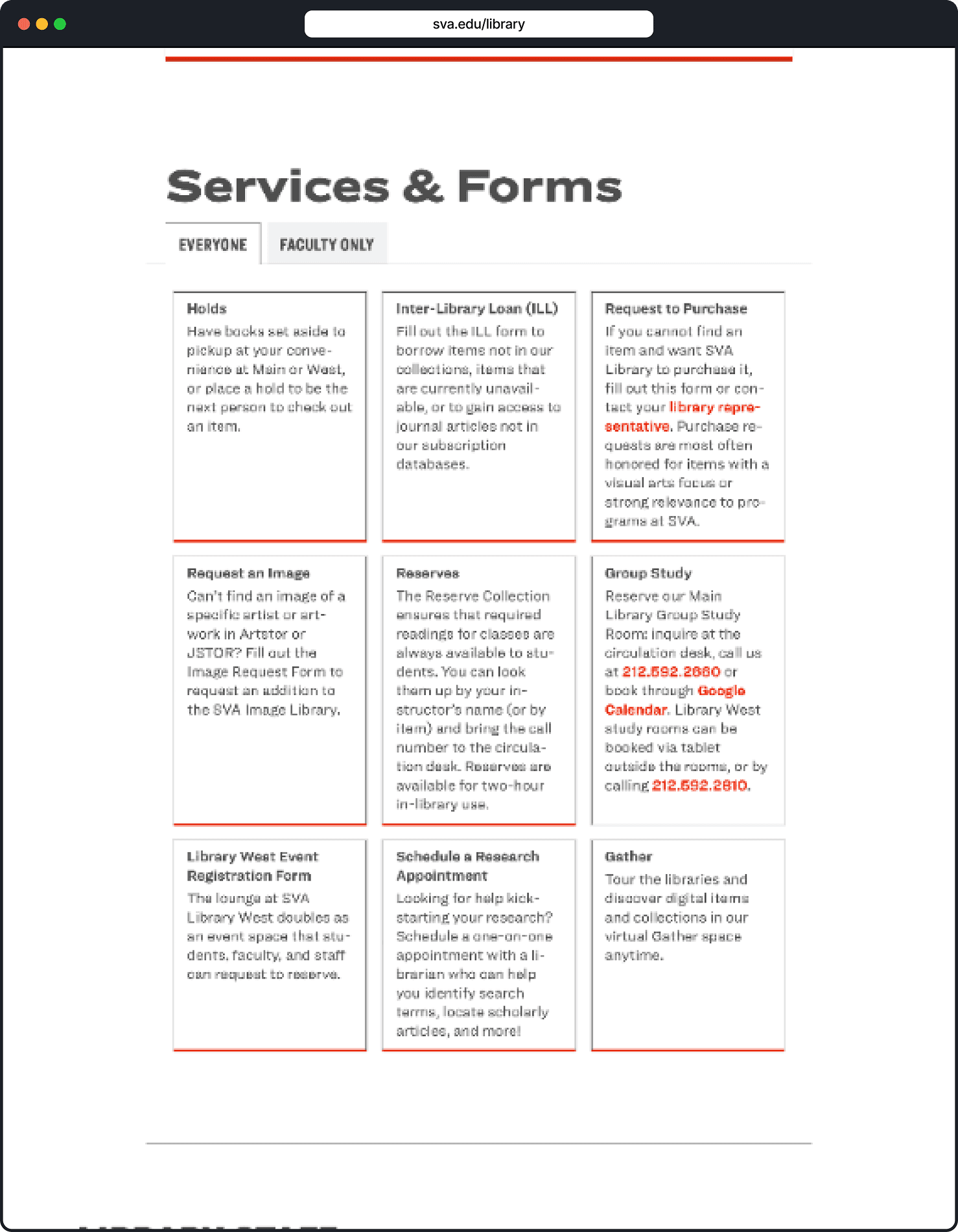 SVA Libraries reported that our findings comprehensively addressed all of their website-related concerns, providing clear guidance to inform strategic improvements and enhance the user experience